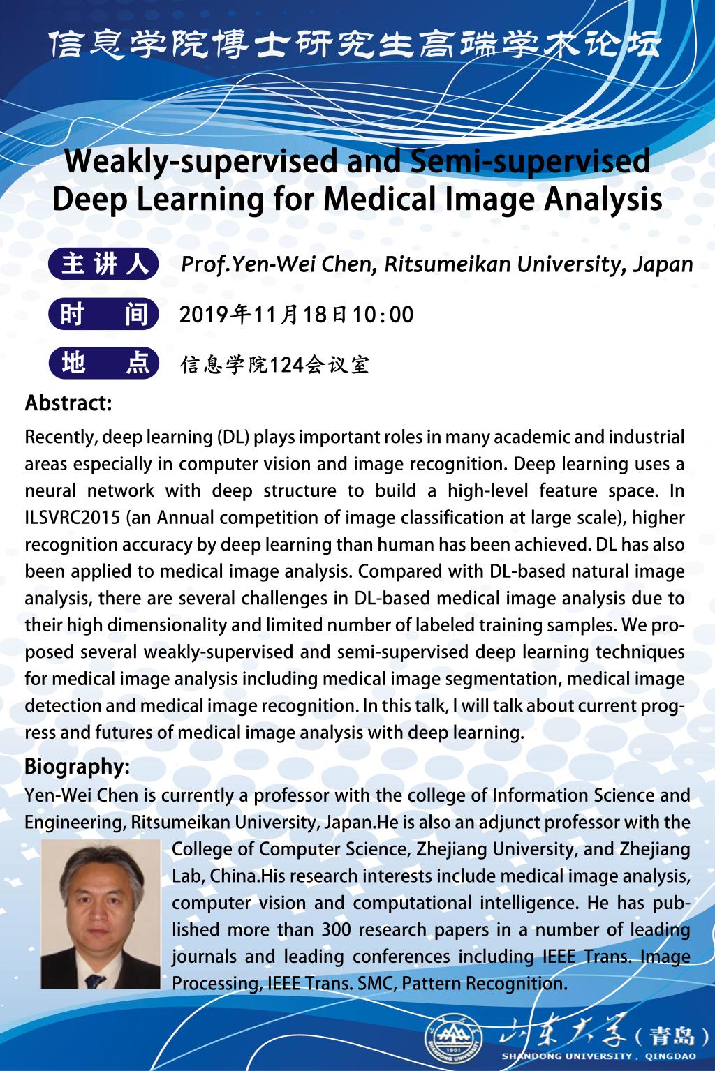 主讲人:Prof.Yen-Wei Chen,Ritsumeikan University,Japan