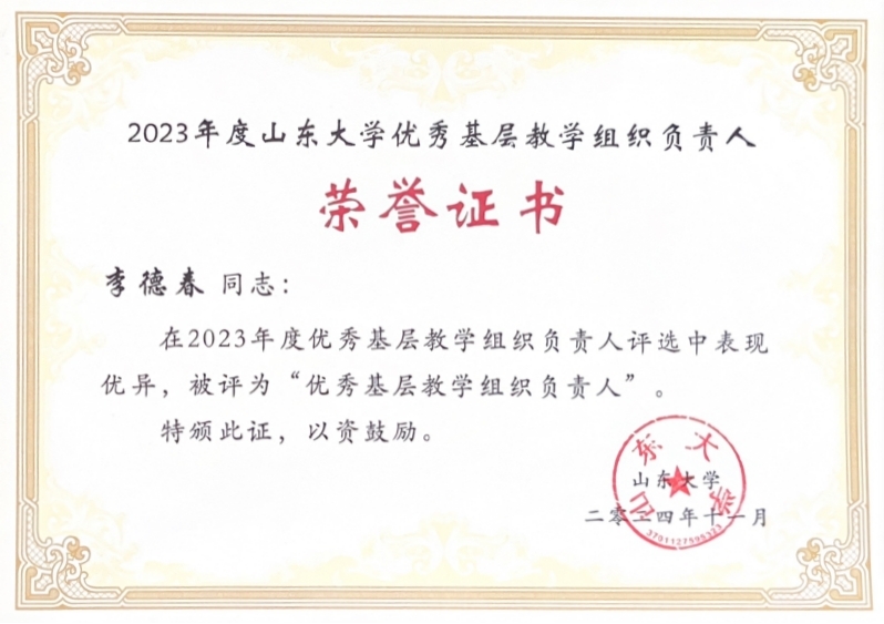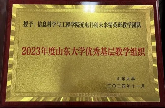 在taptap点点体育组织的“2023年度优秀基层教学组织及优秀基层教学组织负责人”评选中,我院光电科创未来精英班教学团队以其扎实的表现,荣获“taptap点点体育优秀基层教学组织”荣誉称号,李德春教授获评“taptap点点体育优秀基层教学组织负责人”。