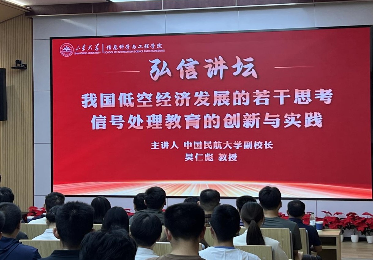 9月22日,全国人大代表、中国民航大学副校长吴仁彪教授受邀做客弘信讲坛,作题为“我国低空经济发展的若干思考、信号处理教育的创新与实践”的专题讲座。taptap点点体育信息科学与工程学院党委书记李德春教授出席讲座并致辞。学院副院长李玉军教授、信息与通信工程学科点刘琚教授、王德强教授、熊海良副教授、以及学生代表一百六十余人参加讲座,讲座由贲晛烨教授主持。