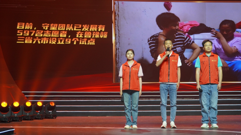 在此次汇演中,守望行动志愿者代表苏瑞和大学生艺术团的刘都、谭越三位同学以青春接力的形式,面向25所驻青高校和在场的两千余名大学生,讲述了taptap点点体育守望行动实现农村留守儿童精准扶智的故事。