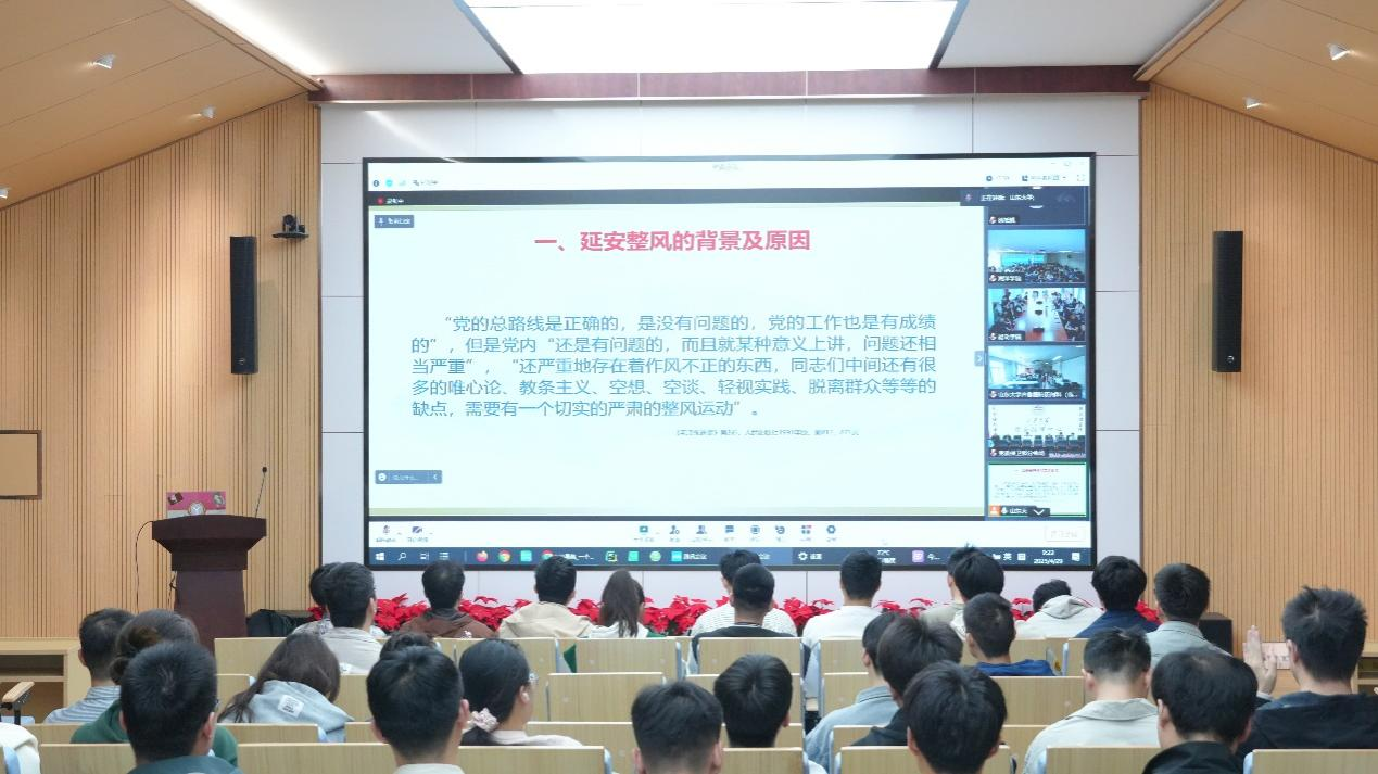 会议以“延安整风的背景及原因”、“延安整风的内容、方法与进程”、“延安整风的历史贡献”和“弘扬延安优良传统,加强党的作风建设”四个主题系统全面介绍了延安整风与党的作风建设。延安整风运动是中国共产党历史上一次深刻的思想革命,旨在通过反对主观主义、宗派主义和党八股,全面整顿党的作风。会议指出从党的发展历程看,延安整风是从指导思想上彻底清除错误路线影响的需要,是保持党的先进性和纯洁性的需要。会议强调坚持用马克思主义及其中国化时代化创新理论武装全党,是我们党的成功之道、胜利之本;坚定维护“两个确定”,坚决做到“两个维护”,是我们党同心同德、行稳致远的关键所在;要推进作风建设常态化长效化,以自我革命的精神保持党不变质、不变色、不变味。