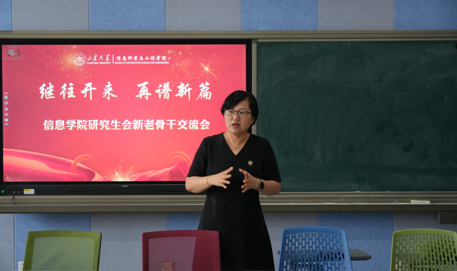 李鸿娟在总结讲话中充分肯定了研究生会过去一年所取得的成绩,并对新一届骨干成员提出了三点希望:一是坚定理想信念,强化责任担当,继续发挥先锋模范作用;二是创新活动形式,拓展工作思路,聚焦品牌建设,打造具有信息学科特色的精品活动;三是服务中心大局,架起师生沟通的"连心桥",在人工智能等前沿领域开展特色活动,为学院高质量发展贡献青春力量。