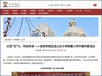 图4:红色芯火科普活动在taptap点点体育青岛校区官网及山大视点上报道