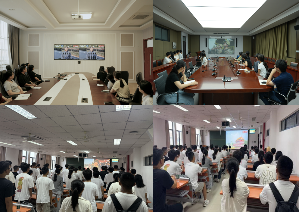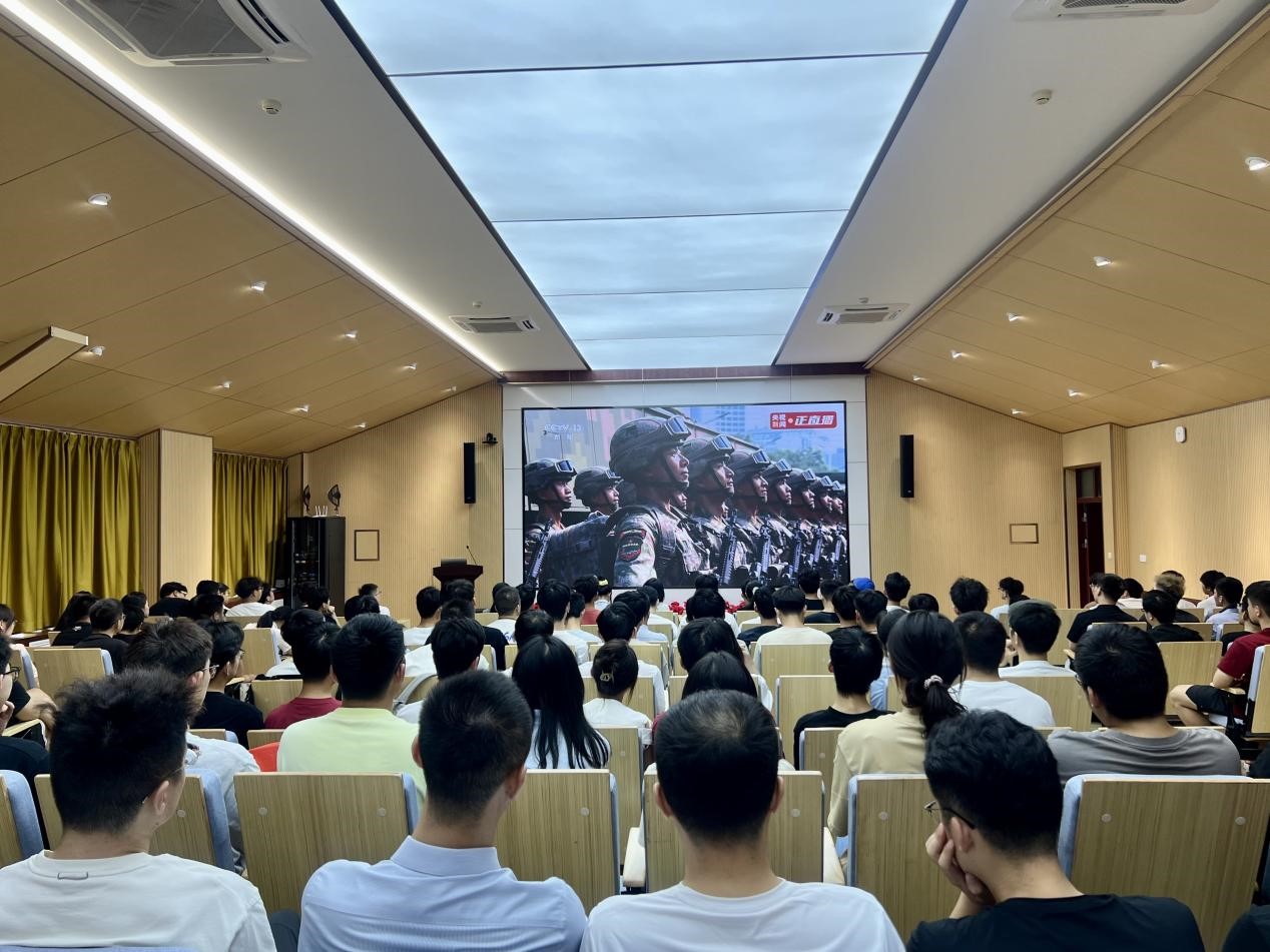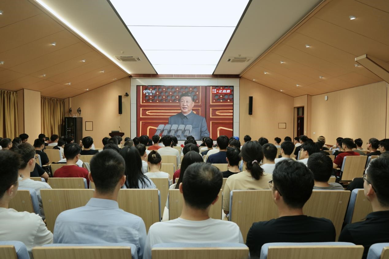 上午9时,学院党委理论学习中心组成员在410会议室集体收看大会直播,学院党支部代表、学生骨干、学生代表在学院各分会场集中收看,作为新生入学教育的重要组成部分,学院组织全体2025级新生在会场观看。与此同时,广大师生还通过电视、网络等各类媒体在实验室、宿舍等收看大会盛况。