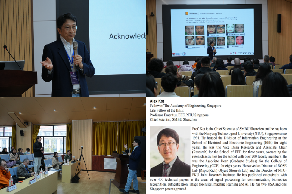 会议邀请了多位国际知名学者作大会特邀报告。新加坡工程院院士、IEEE终身会士Alex Kot教授作题为《Presentation Attack through Face-Spoofing》的报告,深入探讨了人脸识别系统的安全防护与反欺骗算法。