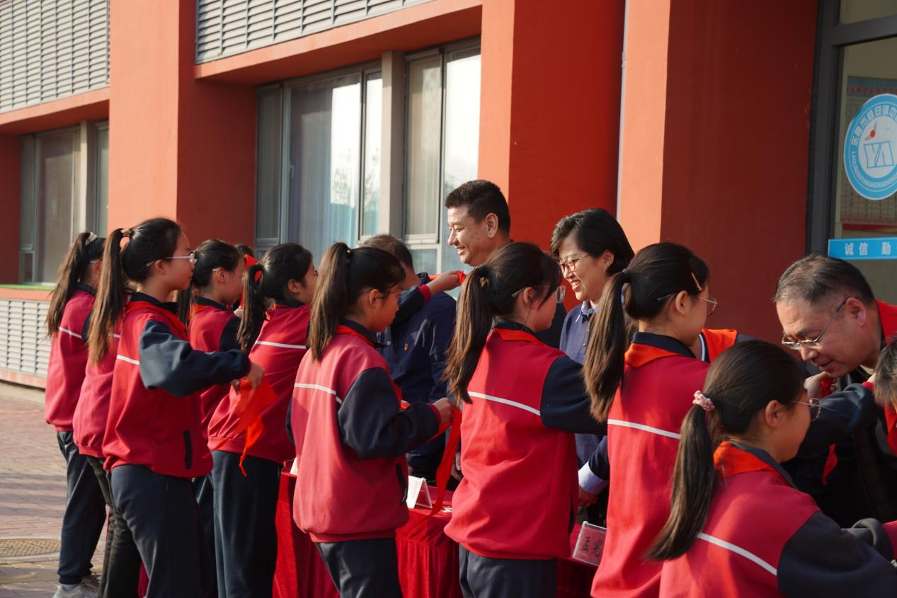 大会在庄严的国歌中拉开序幕。随后,杨安镇中心小学学生代表为与会领导佩戴红领巾。