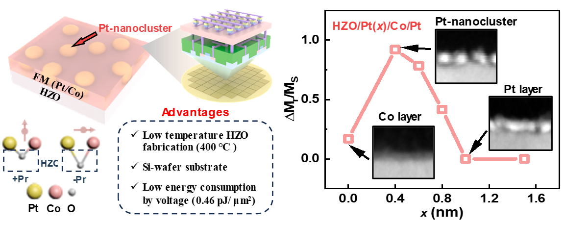 铪基铁电-Pt/Co纳米团簇磁电器件示意图