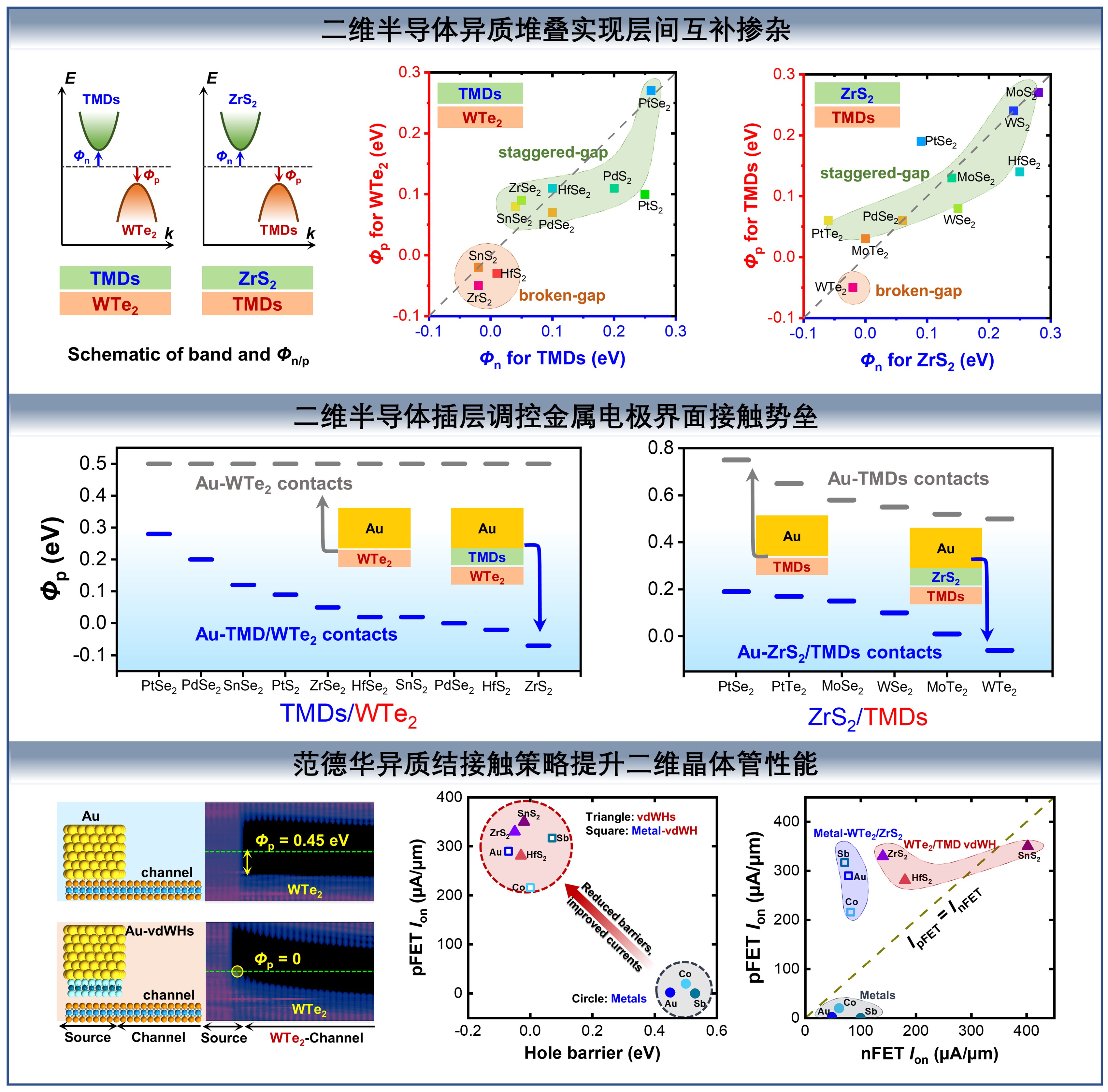 图1.基于范德华异质结接触策略提升二维半导体载流子注入效率