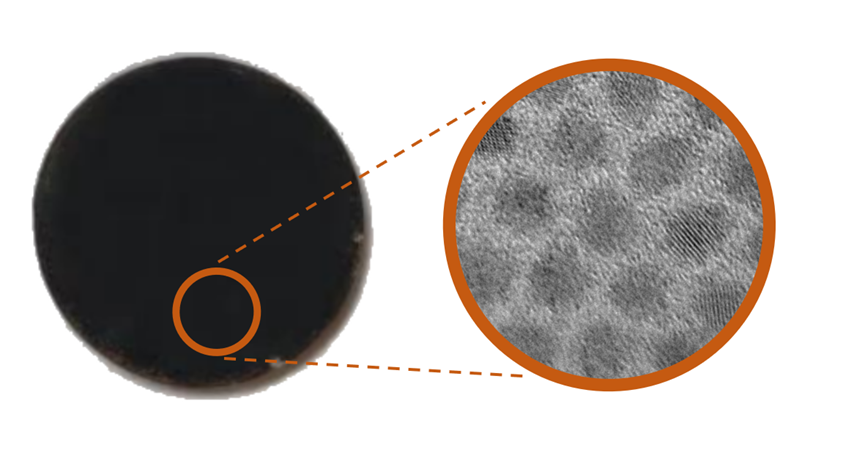 图1 胶体量子点滤波片实物图和透射电子显微镜图像