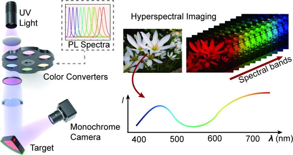 低维卤化物钙钛矿材料因其成分可调的发射特性、高光致发光量子产率和窄带宽度,在光电器件,特别是作为光源和信息编码器方面展现出巨大的潜力。然而,传统的高光谱成像(HSI)系统通常依赖于色散光学元件或扫描机制,这不仅带来系统复杂,成本高昂的问题,更导致数据采集效率低下和数据量过大的挑战,严重限制了在实时监测和便携式应用场景中的部署。因此,探索一种能同时提供高光谱分辨率和高效率的主动式编码技术,已成为推动高光谱成像技术进步的核心方向之一。